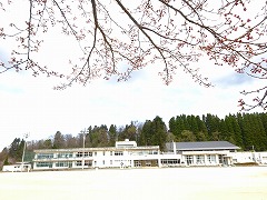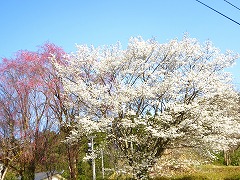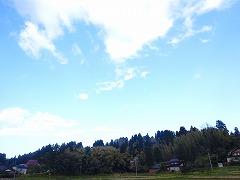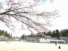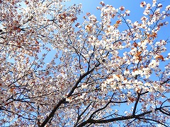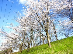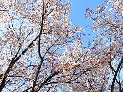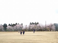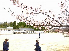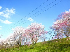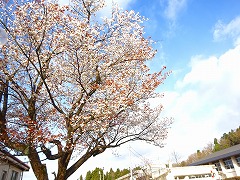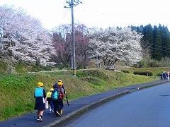 ↑桜を見ながら登校です。青い空、白い雲、素敵な光景です。