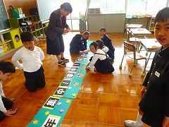 ↑ 4年国語 同時に発音して、どんな言葉を言っているのかあてっこをしています。結構難しいものでした。
