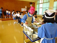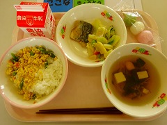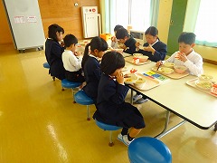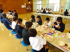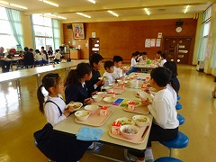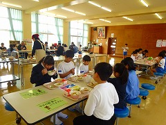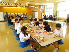↑ 今日は入学お祝い給食です。1年生が今日から給食を食べました。みんな時間内に全部食べることができました。お行儀もばっちりでした。