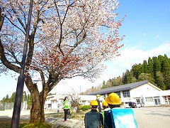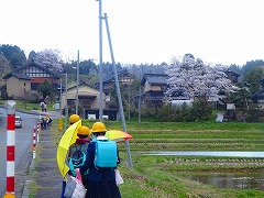 土日の間に学校前の桜が見事に花開き、笠野っ子の登校を出迎えてくれました。春の全国交通安全運動が始まっています。地域の皆様、交通安全指導のご協力ありがとうございます。1年生も上級生と一緒に1列を守ってしっかり歩いて登校できました。