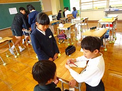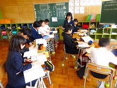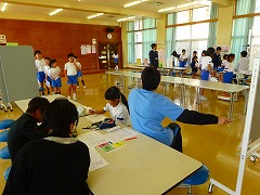 ↓5.6年生が仲良しグループのめあてを話し合い、下級生に説明する準備を進めています。