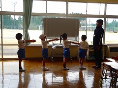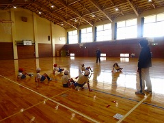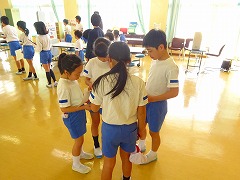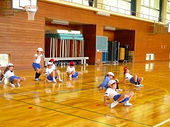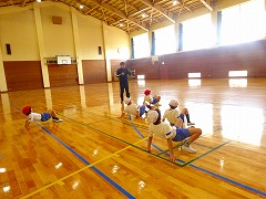 ↑ 1,2年合同で体育をしました。これは、くも「スパイダーマン」歩きです。