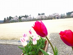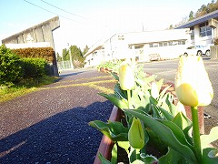 ↓朝登校したら、自分の生活目標が達成できたかチェックをしています。長休みは、低学年は運動場でサッカーやおにごっこをして楽しんでいます。チューリップもにこにこ笑って子供たちの遊びを眺めているようです。