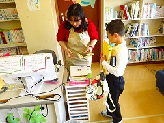 ↑ 今日が学校司書さんの来校日です。今年度初めて図書館で借りて読む本です。学年目標冊数達成するころには、たくさんのお話の世界が心の中に入ってきていることでしょう。