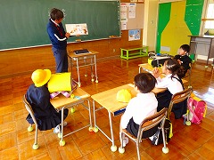 ↓ 1年生 国語 絵を見ながら、お気に入りの挿絵のお話を上手することができました。友達の考えを聞いて、想像が広がりました。