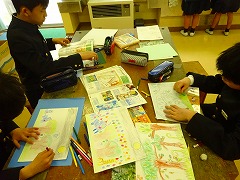 ↑ 1つ上のお兄さん、お姉さんとして、学校紹介をする計画を立てその準備を着々と進めています。頼もしい2年生です。