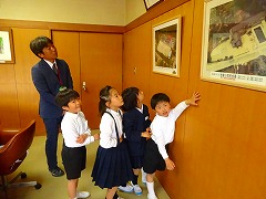 ↑ 1年生が校長室たんけんにやてってきました。昔の学校の写真や、歴代の校長先生の写真を見て質問をたくさんしてくれました。興味が次から次と湧いて出る意欲たっぷりの1年生です。