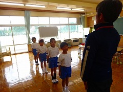 ↓ 1年生体育 並び方の練習です。1列に上手に並ぶことができました。