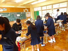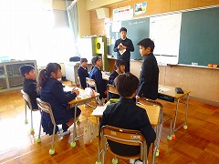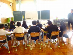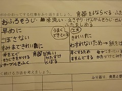 ↑ 6年生は、家庭でどんな仕事をして、どんな工夫をしているのかまで話し合いました。友達が発言した後、自分の感想を伝えることもでき、温かな雰囲気で自分たちで学習を進めることができていました。