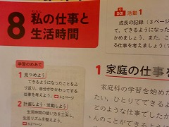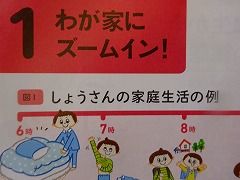 ↑ 家庭科 今年は担任の先生と家庭科の学習をします。5年生は家庭での過ごし方について考えました。