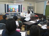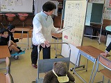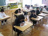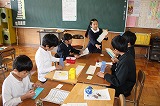 3・4年生は刈安小学校との学年交流で、お互いの写真入りの名刺交換や、得意なことなどを紹介し合いました。