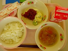 ↑ 今日は入学お祝い給食です。1年生が今日から給食を食べました。みんな時間内に全部食べることができました。お行儀もばっちりでした。