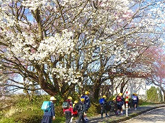 ↑桜を見ながら登校です。青い空、白い雲、素敵な光景です。