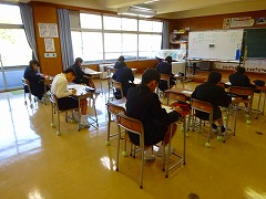 ↑今日が県学力調査と町学力調査を実施しました。これまで学んだことを全力で出し切っています。