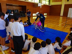 ↑ 交通安全自転車教室を実施しました。今年度は、自転車の点検の仕方や、正しい乗り方をDVDを見たり、実際の自転車を見たりして学びました。体に合ったサドルの高さ、ヘルメット着用の義務、防犯登録の必要性などを学びました。くれぐれも飛び出しはしないでください。交通ルールを守って安全に乗りましょう。