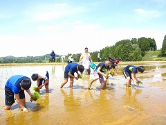 ↑ さわやかな五月晴れの下、今年も農事組合法人市谷の皆様とJAかほく支部の皆様のご協力を得まして、笠野小田んぼ塾にて、田植え体験が実施できました。今日にいたるまで、田おこし、しろかきやもみの芽だし、苗の世話、枠ころがし、水の管理などたくさんの準備作業があったことと思います。日本古来から伝わる稲作を体験できたこと、それから泥のぬくもり、太陽の恵み、清らかな水のありがたさなどを実感できたこと、そして、棚田米の市谷ブランド米を生み出す地域の方の思いに触れることができたことなど、大変貴重な経験ができました。黄金の実りがとても楽しみです。それまでたくさんの作業があると思いますが、どうぞよろしくお願いいたします。