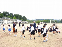 ↑ たくさん遊んで、2校交流の3つの目的、①仲良くなる、②役割を果たす、③安全に活動するがすべて達成されました。楽しかったこと、お家の方にたくさんお話してくださいね。