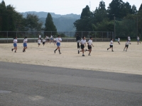 秋晴れの下、長休みの10分間全校児童で運動場を一生懸命走っています。