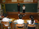 18日(火)の朝学習の時間に各学年担当が教室におじゃまして、「たいそうのおにいさん・おねえさん」となり、目と体をリラックスさせる体操のもはん指導を行いました。大きな古時計のオルゴールメロディーにあわせて、6年生がやさしい声で方法説明を録音したCDを毎週火曜日・金曜日に放送する予定です。