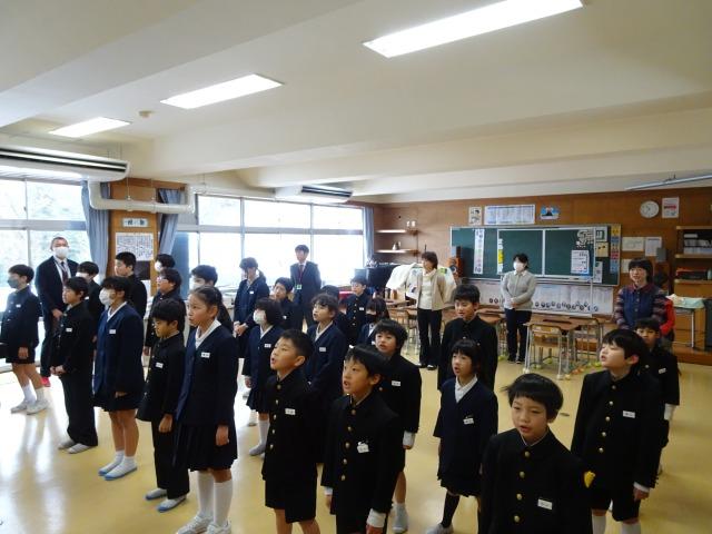 雪の終業式となりました。大きな校歌が響きました。冬休みの生活の話もしっかり聞いていました。帰りには,いつもの「さようなら」に加えて「よいお年を」とも言ってくれました。みなさん,よいお年を。