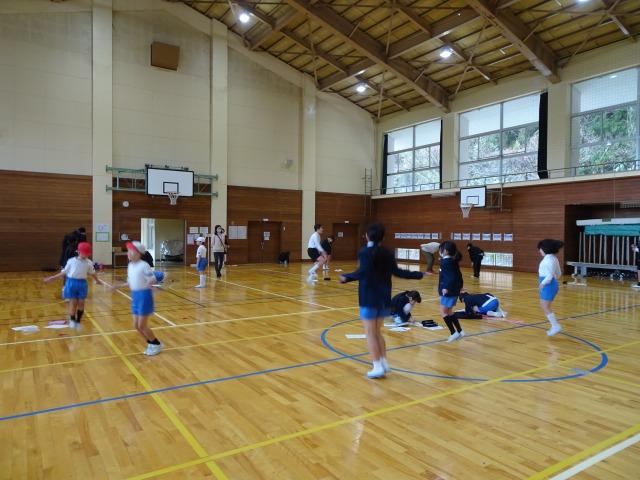 今日から冬期間の体力向上などをねらいとした,長休みのレッツ・ピョンピョンピョン(なわとび運動)がスタートしました。月・水・木曜日に,全校児童が体育館に集まってなわとびをします。外は雪が降っていましたが,みんな寒さに負けず頑張っていました。