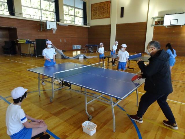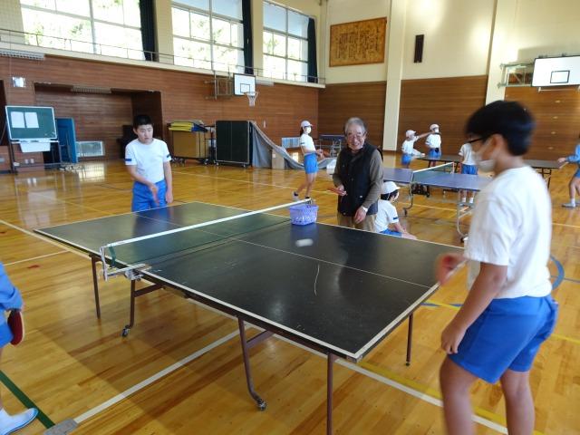 昨年に引き続き,地域の方とクラブの時間に卓球で交流をしました。4~6年生が,3名の地域の方とラリーをしたり試合をしたりしました。体も心もぽかぽかと温かくなりました。