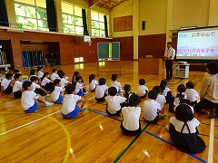 ↓ 今日は5,6年生対象に土砂災害について学びました。石川県土木部砂防課からの出前授業です。まず、土砂災害とはどんなものか、被害を最小限にするための防止策を、ハード面とソフト面から学びました。