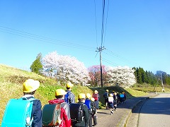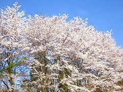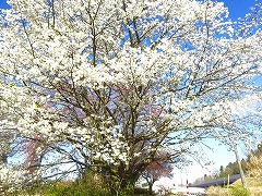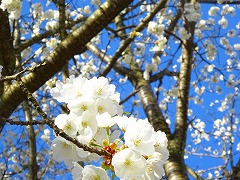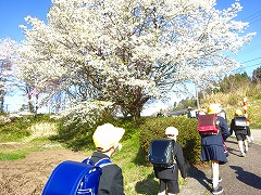 ↑ 見事な桜ロードです。「チェリーブロッサム」、名前の通り、さわやかでフルーティーなチェリーの香りがするのですよ。実際歩いてみると、チェリーの香りに包まれて幸せな気分を味わえる通学路です。