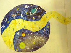 ↑ 光村図書5年の巻頭の詩を味わいました。題名は「銀河」それぞれが感じたイメージを共有することで、考えが広がります。想像力も豊かになります。自分の考えを話す力もつきます。みんなでどんな考えを創り上げるのかな、学習って楽しいですね。