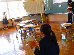 ↑ 「ふきのとう」の音読です。場面の様子を思い浮かべながら、個人練習を頑張り、全体発表会です。ともだちのよかった読み方とそのわけを話しました。友達のよさを見つける温かさが素敵でした。