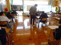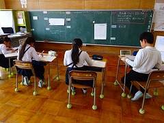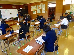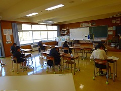 ↑今日が県学力調査と町学力調査を実施しました。これまで学んだことを全力で出し切っています。