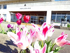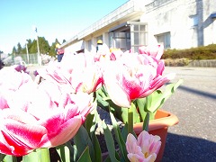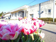 ↑ 公民館で植えてくださったチューリップも満開に花開きました。