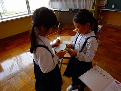 ↑ 早速、飼い方調べをして、お家づくりをしました。何を食べるのかな、どんなところが好きなのかなあ?