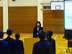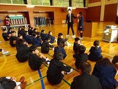 ↑ 最後に津幡町の英語スピーチコンテストに笠野っ子の代表として出場する5,6年生の英語スピーチを聞かせていただきました。笠野っ子は「このように英語を話せる人になりたい」と憧れをもって聞いていたことでしょう。スピーチを披露してくれた皆さんは、きっと、冬休みも継続してたくさん練習したことでしょう。とても滑らかな英語でした。みんなで今年も外国語の学習を楽しく頑張りましょう。