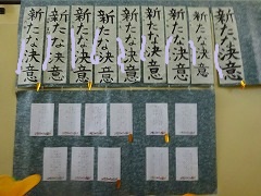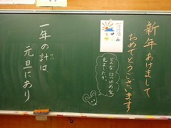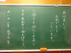 ↑ 教室には先生方からのメッセージがありました。すてきな年にしましょう。