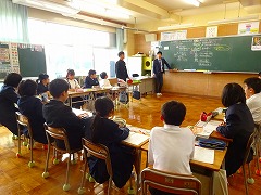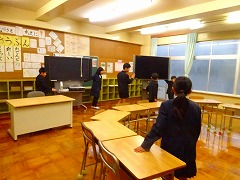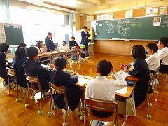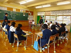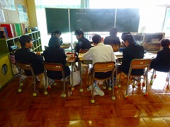 ↑こちらは、6年生の家庭科です。お家の人に感謝の気持ちを伝える献立を話し合っていました。栄養バランスも考えて、喜んでもらえるメニューを考えていました。