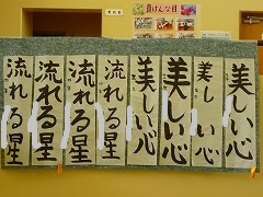 ↑ 校内書初め展をしています。早速、登校した児童が見入っていました。どの作品も力作が勢ぞろいです。冬休み頑張って練習したことが伝わってきます。