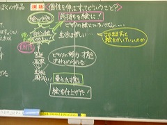 ↓5.6年 道徳科 〈個性を伸ばすことってどんなことか〉ピカソの絵に対する思いの教材を基に話し合いました。