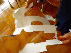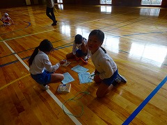 ↑ 1年生 図工 牛乳パックから紙飛行機を作りました。丈夫でよく飛びそうな飛行機が完成しました。手作りおもちゃで遊ぶのが楽しみです。