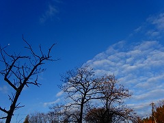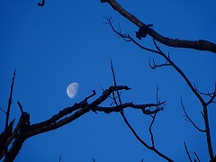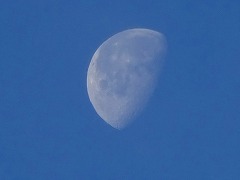 ↑西の空には、下弦の月が残っていました。午前7時30分の月です。月齢は21日です。11時22分に西の空に沈みます。