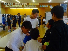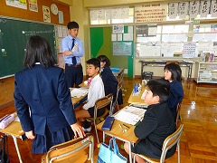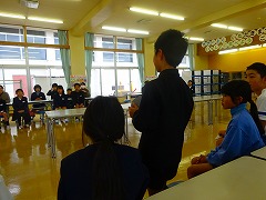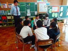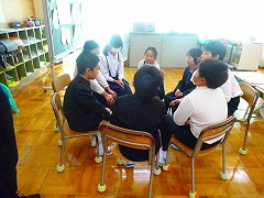 ↑ 感謝の気持ちを伝えようと、3・4年生が相談しています。それぞれが自分の考えを出して、それに関する思いを伝え、対話が成立していました。