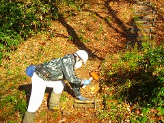 ↓ 笠野の森です。今日は金沢森林組合さんが、階段の整備とベンチが長持ちするようにと塗装作業に来てくださいました。