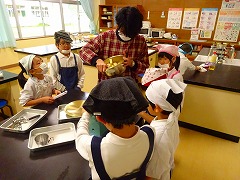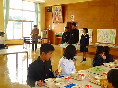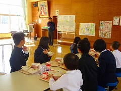 ↑6年生も一口試食させてもらいました。5年生の頃を懐かしく思い出したことでしょう。