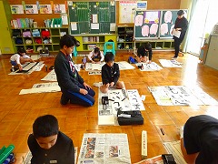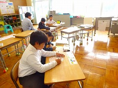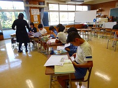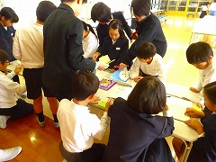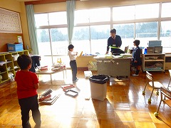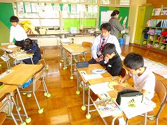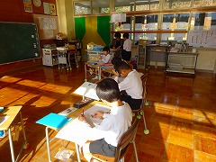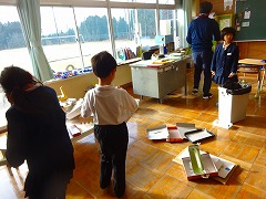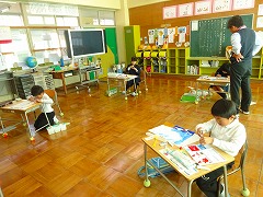 ↑ 1年生は図画工作の作品の後片付けをしました。お家の方に見ていただけることを楽しみにしています。