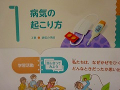 ↑6年生は、病気の起こり方の学習です。風邪はどんなときにひくのか話し合い、予防策を考えました。