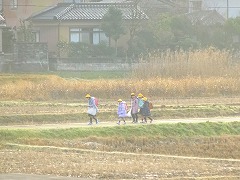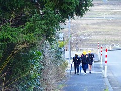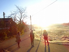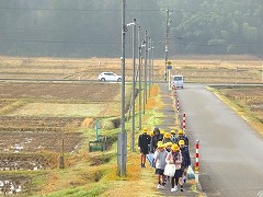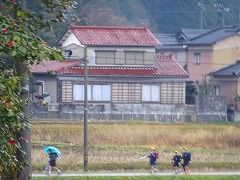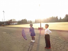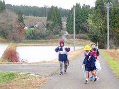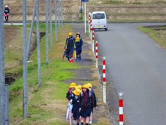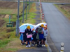 ↓ 自然のエネルギーをいっぱいに浴びながら登校する笠野っ子です。地域の方々の見守りありがとうございます。