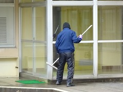 ↑ 校務士さんが、窓ガラスの掃除と、下駄箱のすのこの修理をしてくださいました。環境と安全に気を配ってくださっています。ありがとうございます。