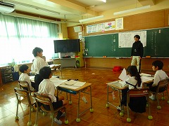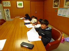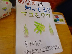 ↑5.6年総合的な学習 課題について追求してきたことを発表し、よりよくするアドバイスをもらいました。これは、津幡名産まこもグループの発表です。