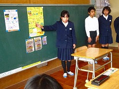 ↓給食の時間に図書委員会さんが、2学期の読書目標冊数達成の呼びかけをしました。低学年は144冊、中学年は63冊、高学年は54冊が目標です。読書は心の栄養となるばかりではなく、読解力の基本となります。ゲームではなく読書に親しむ生活を楽しみませんか。
