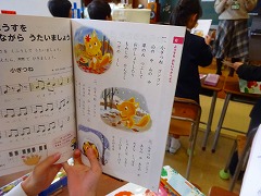 ↑1.2年音楽 「こぎつね」の歌を様子を思い浮かべながら歌いました。冬の山のこぎつねのようすを歌で表現しました。